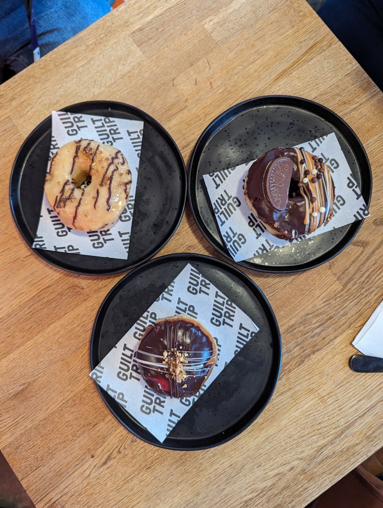 Once we’d finished at the first dining spot, it was time for a walk around the river circuit. The first leg of the journey worked up our appetite for the snack stop, Guilt Trip. Tucked away in the industrial estate of Lower Wick, Guilt Trip offers coffee and doughnuts as well as a couple of other treats. We decided to split three ways the Terry’s Chocolate Orange, Nutella Mousse and Maple Toffee doughnuts.