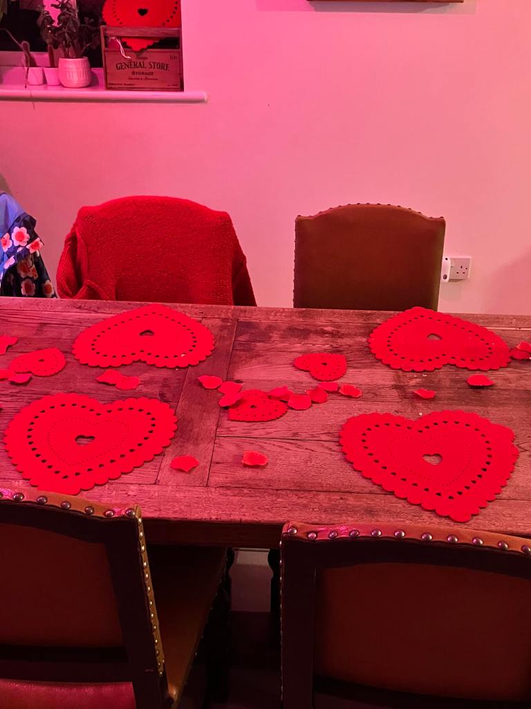 Pulling up to the house and the mood is immediately set with the red glowing from within. The Good Food Gang gathers each pancake night as a yearly tradition to devour an array of savoury and sweet pancakes. Each brings a little offering to the occasion but LC pulled out all the stops to make this a Valentine’s Pancake Day special. The table is adorned with heart shaped placemats and coasters with an individual gift for each diner, not forgetting a crème egg as a sweet treat. We have a couple of extras to the gang tonight but they’re equally as enthusiastic for the occasion. Savoury pancakes are not to be scoffed at until they’re tried. Southern fried chicken pieces with southern style gravy and grated cheddar cheese was the meaty offering thanks to LC. The veggie option is always delivered by HT with cheddar cheese, sun-dried tomatoes, basil and balsamic glaze. RS bringing the sweet treats with the classic lemon and sugar as well as Nutella and strawberries.