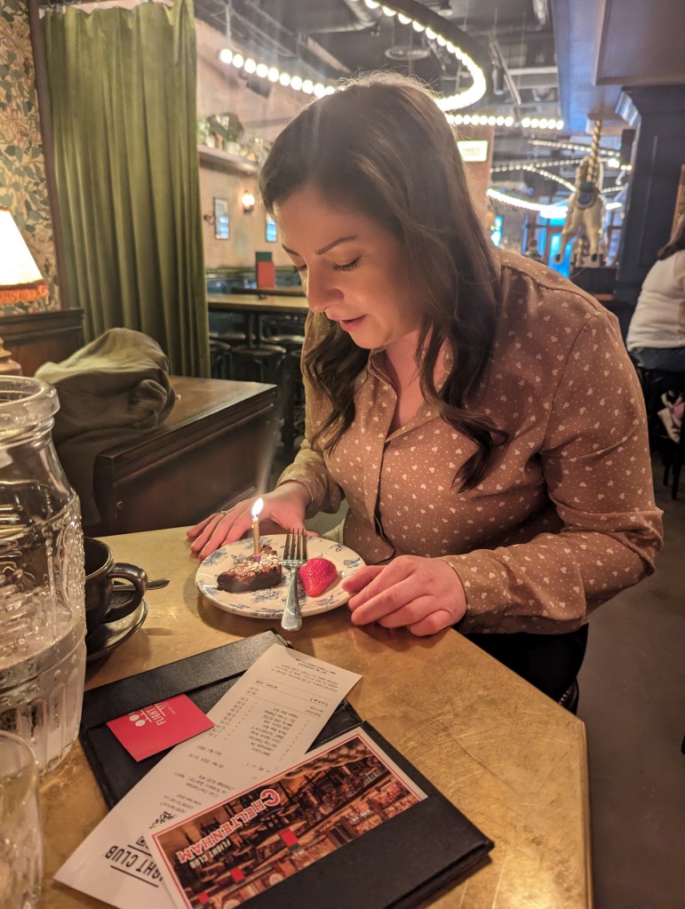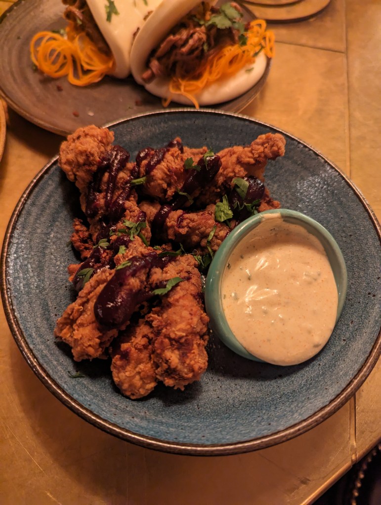 Started with drinks of coffee for LC (nice and smooth), HT had a Spring Passion non-alcoholic cocktail (refreshing) and RS stuck with a lemonade (standard). For lunch today, HT and LC decided to share chicken skewers, Yorkshire puds, chicken bites and bao buns as inspired by the sharing plates for 4 but decided it was probably best to stick at for 2 sized meal. Both agreed that the bao buns were their least favourite as they needed more sauce with the Yorkshire pudding being the best out of the selection. Both left one til last and toasted it before eating. RS had the vegan bao buns with the sharing chips and cheese sauce. Wasn’t expecting cheese sauce to be like this, so rich, thick and orange! Relieved she didn’t add the bread to the mix otherwise it would have been carb overload. The team at Flight Club were so friendly and were kind enough to bring HT a brownie with a candle in as they knew it was her birthday. It’s always the little touches.