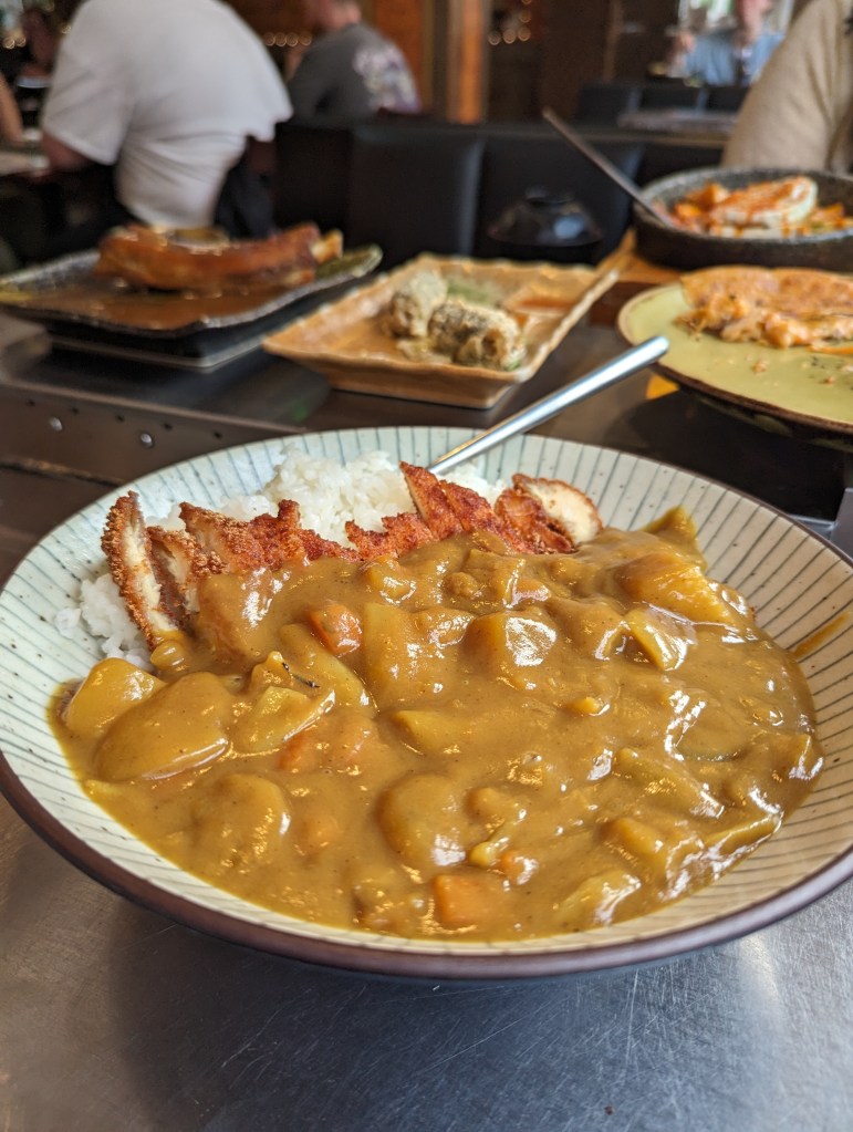 Mains to follow included chicken katsu for LC, Beef Bulgogi for HT and Bibimbap tofu for RS. The portions were huge for each meal but felt particularly so with the katsu curry. Crispy chicken on an enormous bed of rice and smothered with the classic katsu curry sauce. HT was a little disappointed with the meat on her bulgogi and felt if she had ordered the chicken it would have been more satisfying. None the less she was happy with the lettuce dumplings and maybe next time would try something else. RS was hit with the spicy sauce covering the tofu and fried egg at the top of the bibimbap but all of the ingredients infused together created mouthfuls of flavours with each bite. Not sure if the hot plate on the table was supposed to be used at any time but it was left off to save any injury. Drinks order was simple with sprite and Coca Cola although you wouldn’t have been able to decide on another option for your second drink as the menu was taken away.